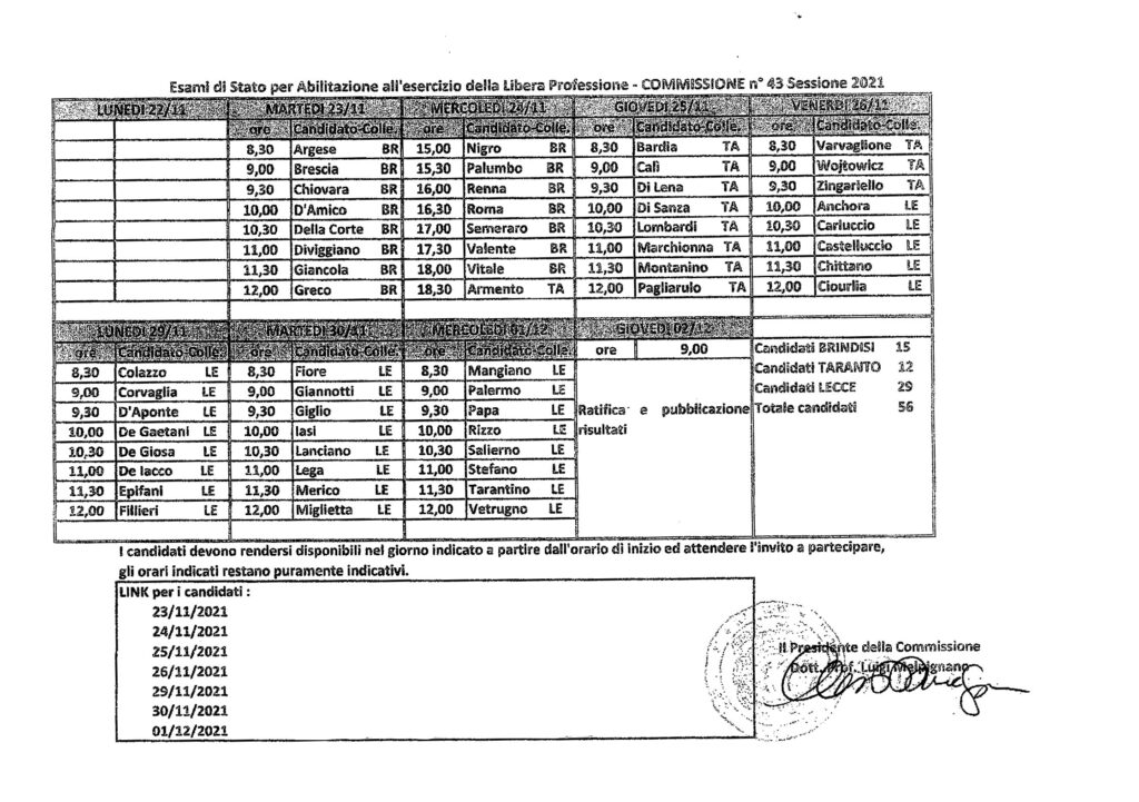 CALENDARIO ESAMI DI STATO PER L’ABILITAZIONE ALL’ESERCIZIO DELLA LIBERA PROFESSIONE DI GEOMETRA – COMMISSIONE N.43 – – SESSIONE 2021