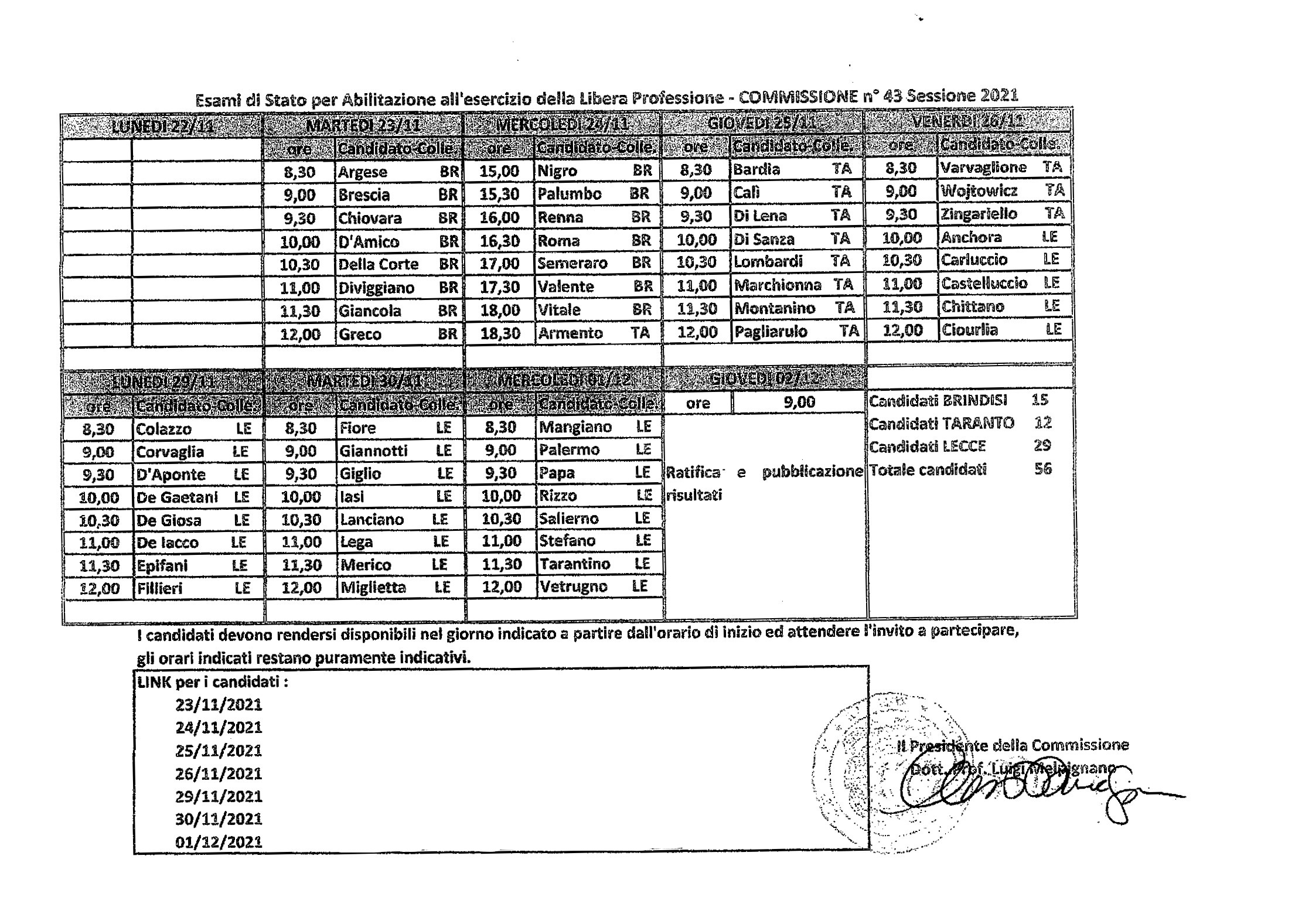 Si pubblica, come disposto da Circolare con indicazioni operative del MIUR, il calendario delle prove per gli Esami di Stato alla’esercizio della libera Professione di Geometra – sessione 2021