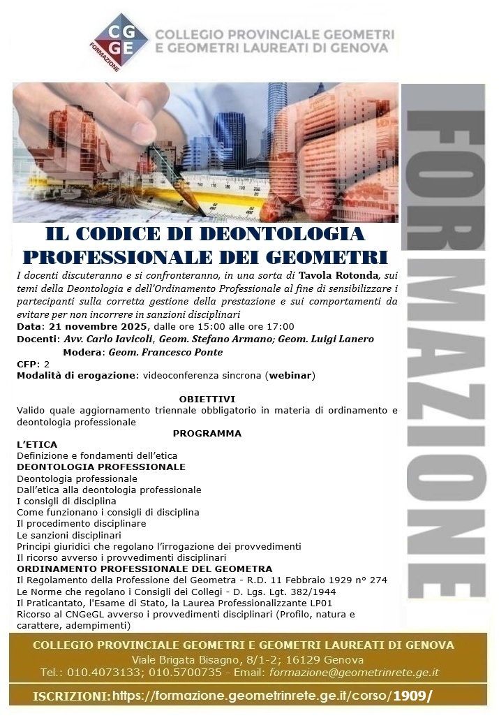 Link di iscrizione: https://formazione.geometrinrete.ge.it/corso/1909/